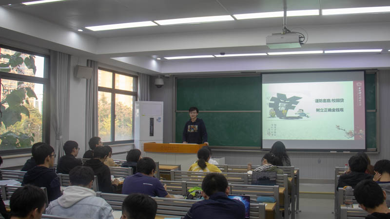 虽然同学们对传销、不良校园贷和套路贷等的危害有所知晓,但是大家对其内涵、概念和区别并未完全明晰。喻洋同学以幻灯片讲解结合宣传视频、热点新闻等多样化的形式向同学们展示了这些非法活动的典型特征与误入陷阱后的应对策略。其中,不良校园贷和套路贷共同的特点就是借贷手续简单,但借贷人后期可能遭受威胁、殴打等违法行为,这就要求我们在日常需要贷款的时候,应该对放款来源做好调查,对中间手续进行反复思考,不要盲目相信“放款快”、“无利息”等所谓的“小利”,否则就会失去理智的判断而误入陷阱。