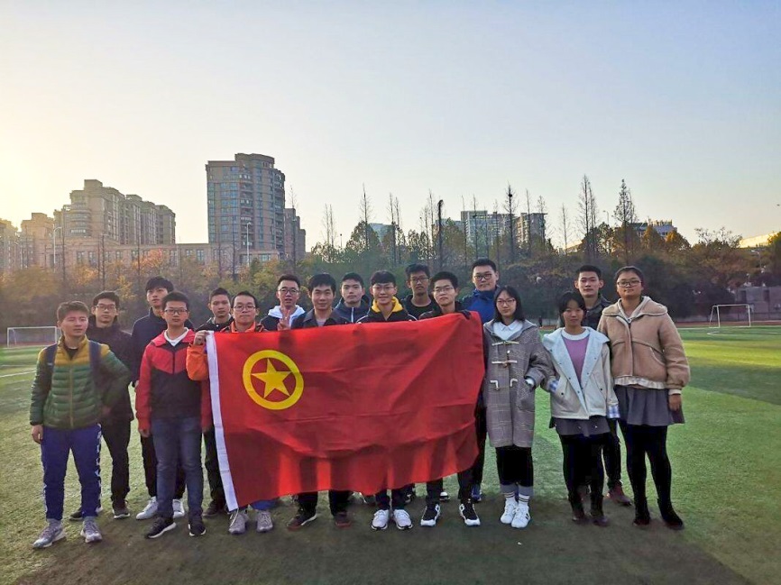 待大家到齐后,我们拿着团旗,在足球场上合影,留下纪念。紧接着,各个部分的活动有条不紊地开展开来。我们先后进行了足球射门、足球传球、篮球投篮、50米往返接力等项目,大家都积极参与其中。