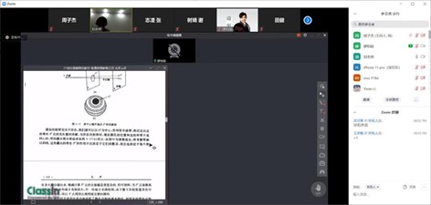 主持人周子杰提前15分钟在群里分享视频会议链接,给大家充足时间调试设备和网络。授课时,有的同学采用播放自己录好的视频,有的则直接直播授课,边讲边板书。授课同学普遍采用展示用写好的手稿或者制作好的幻灯片进行授课,在重要的地方批注。这种“照本宣科”+“突出重点”的教学手段能够快速、简明地讲完知识点,并且方便后期的复习参考。