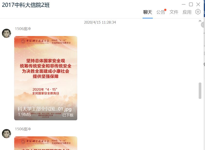 2020年4月15日,我国迎来了第五个国家安全教育日。为贯彻落实总体国家安全观,切实增强同学们的国家安全意识,信息学院本科17级2班在班级QQ群中开展了线上国家安全教育宣传活动。