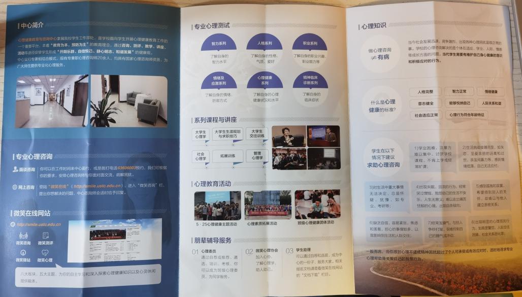 活动开始,刘海玲老师首先向大家说明了本次活动的目的和意义,引起大家的关注和重视。接着,刘老师向大家普及了有关心理知识,并强调:当今社会发展迅速,竞争激烈,出现各种心理困扰是很正常的事,当代学生需要有维护自己身心健康的意识和积极应对的行为。之后,刘老师又向大家发放了中科大心理健康教育与咨询中心的宣传手册以方便大家进一步了解心理咨询相关知识。