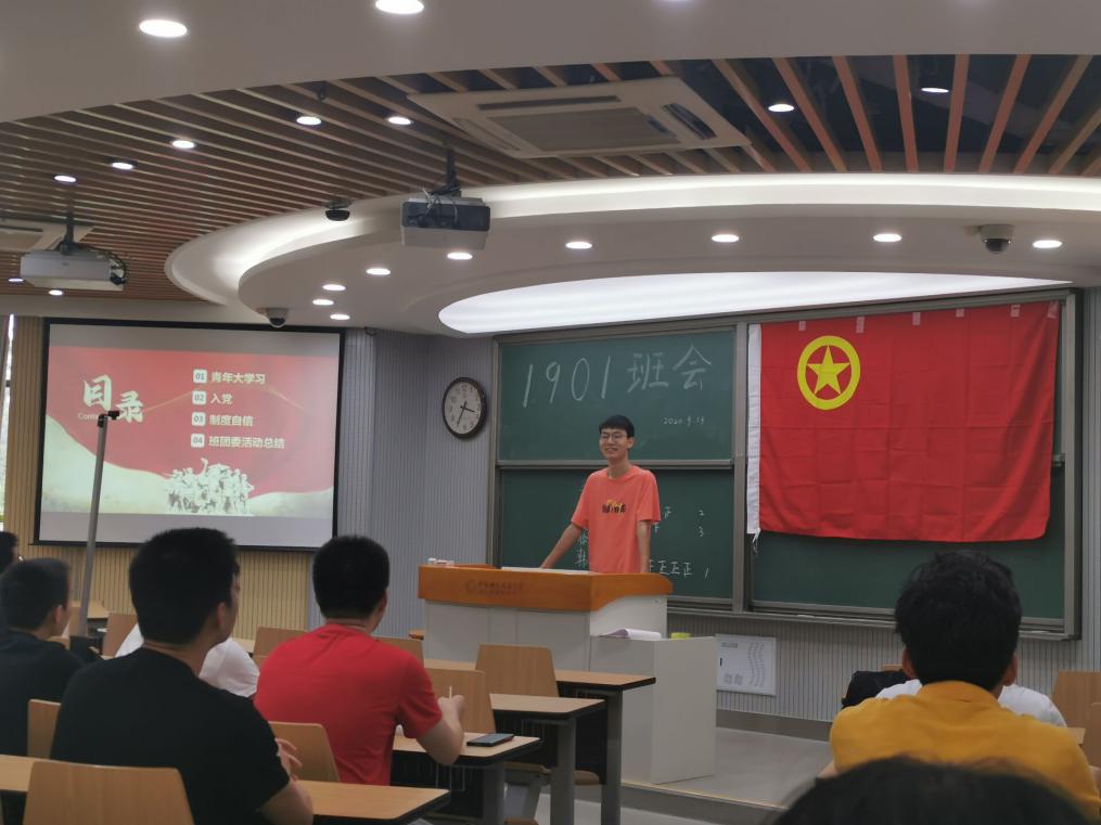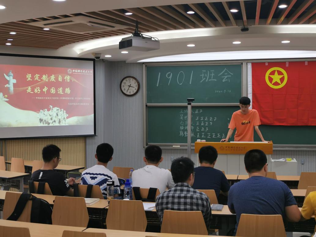 为贯彻落实中宣部关于组织好《中国制度面对面》学习宣传工作的通知,信息科学技术学院本科19级1班于2020年9月13日下午在3A211教室举行了“坚定制度自信,走好中国道路”主题团日活动。到场的嘉宾有班主任胡新伟老师,19级1班全体团员参加此次活动,主持人团支书吴云典。