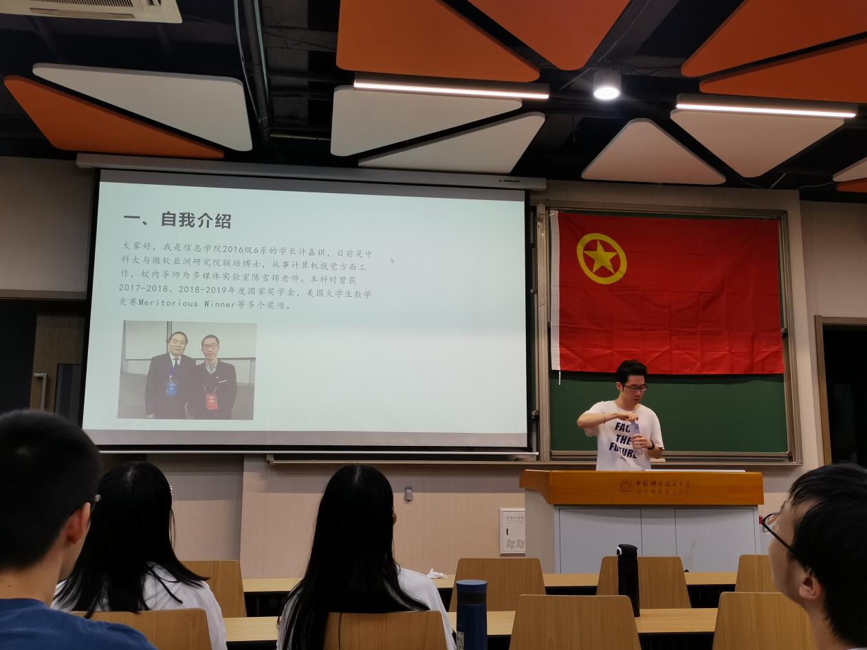 信息科学技术学院本科19级4班于2020年9月22日晚在3C202教室开展了学长经验交流会。班主任徐旭老师邀请了许嘉祺学长为我们传道解惑,分享经验,信息科学技术学院本科19级4班全体到场参加。