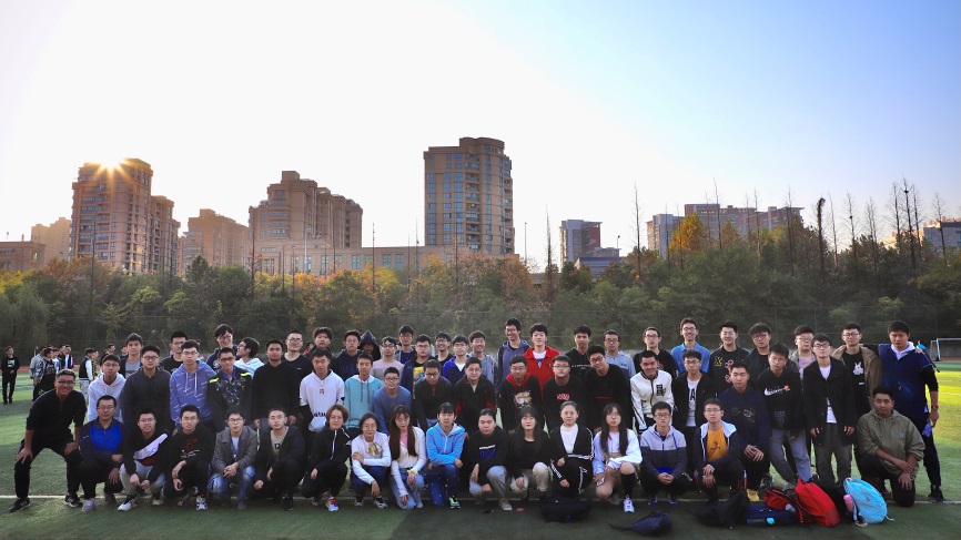 活动前网络空间安全学院本科2019级同学们以及班主任吴文涛老师在操场中进行了合影,并进行了诸多准备活动,为运动会做出准备。
