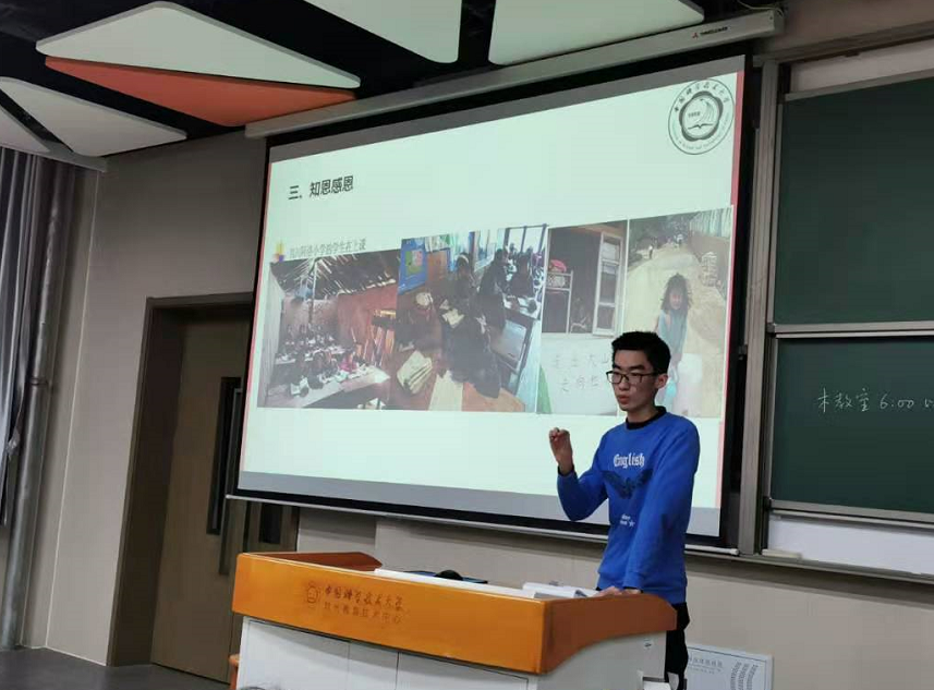 他为我们讲解了关于国家贫困学生补助学金的一些政策,这样的奖学金对成绩要求没有那样高,更加针对于那些品学兼优,但家庭不那么富裕的同学。文俊鹏同学还向我们介绍了我们班的两位优秀团员,他们在拿到国家助学金后,知恩图报,参加了我校的“一帮一”活动,为那些贫困地区的孩子献上了自己的一份爱心。