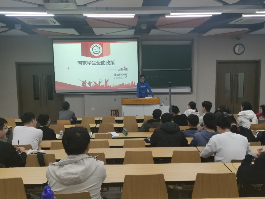 2020年11月29日晚,信息科学技术学院本科2019级6班在3C204进行了一次介绍国家学生资助政策的班会,由安全委员文俊鹏同学主讲,班级全体同学参与,班主任阳思老师受邀出席。