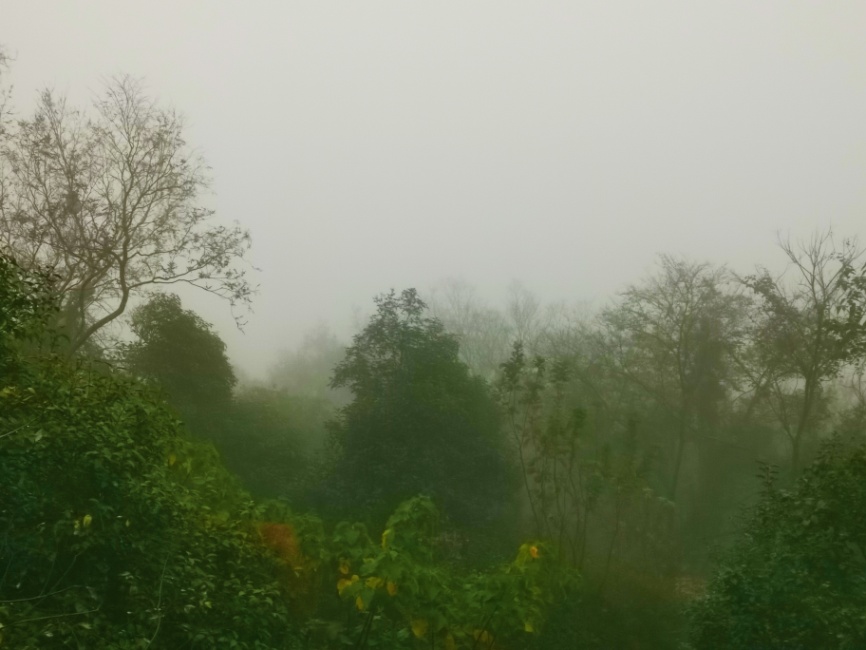 微雨恰至,给山峦蒙上了一层梦幻的色彩,与晴天的蜀山风景相似而又有很大的不同。山脚的半边街颇有些古色古香的韵味,与朴实的山路相映成趣。一路上,有同学的欢声笑语,轻声歌唱,矫健的步履踏在黄叶铺地的微湿山路上,空气里氤氲着大家愉悦的心情。