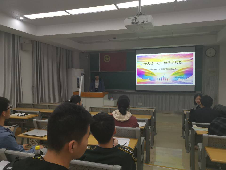 为迎接即将到来的运动会和体测,同时敦促大家养成良好的运动习惯,2020年10月18日晚,信息科学技术学院本科19级6班在3A104教室举行了主题为“每天动一动,体测更轻松”的体育打卡活动的开幕式。本次活动由体育委员哈拉马提同学主持,班主任阳思老师受邀出席了本次活动。
