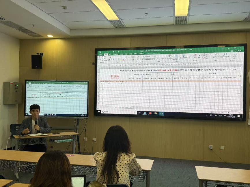 会上,学院党务办公室冯陶围绕组织工作提醒清单对全体党支部作重点解读,提醒各支部通过“三会一课”、主题党日等形式组织党史学习教育、常态化开展作风教育,并依照相关工作条例及通知,落实谈心谈话、党费收缴管理、出国党员联系、开展支部共建等工作。随后,冯陶分别就党员管理系统和党费缴纳系统进行了专项培训,详细讲解了系统操作流程与注意事项,为提升支部党员信息管理规范性和党费收缴效率提供了有力支撑。