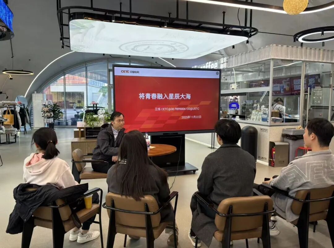 2025年11月22日上午,第三期“信”链未来·专业前沿与职业发展沙龙在高新校区读者服务部顺利举办。本次活动由信息科学技术学院团委主办、信息科学技术学院研究生会承办,面向全体在校师生,旨在搭建国内外专家学者与在校师生近距离交流的平台。本次活动邀请到中国电子科技集团公司第三十八所的王烁主任,带着他的“科大记忆”与卫星通信领域的硬核干货,既聊技术前沿,也为同学们的职业方向“划重点”。