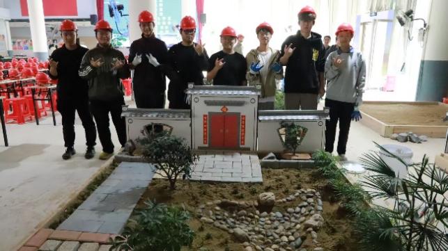 进入实践环节,同学们在组长的统筹下迅速明确分工,认真熟悉图纸与工具使用方法。随后,大家兴致勃勃地投入创作,搬石、铺路、植绿、造景,各个环节有条不紊。 在整个搭建过程中,安全员全程守护,确保了活动安全、高效进行搭建完成后,专业的匠人师傅对同学们的作品一一点评打分,并评选出前三名登上领奖台,各小组代表分享活动体验。