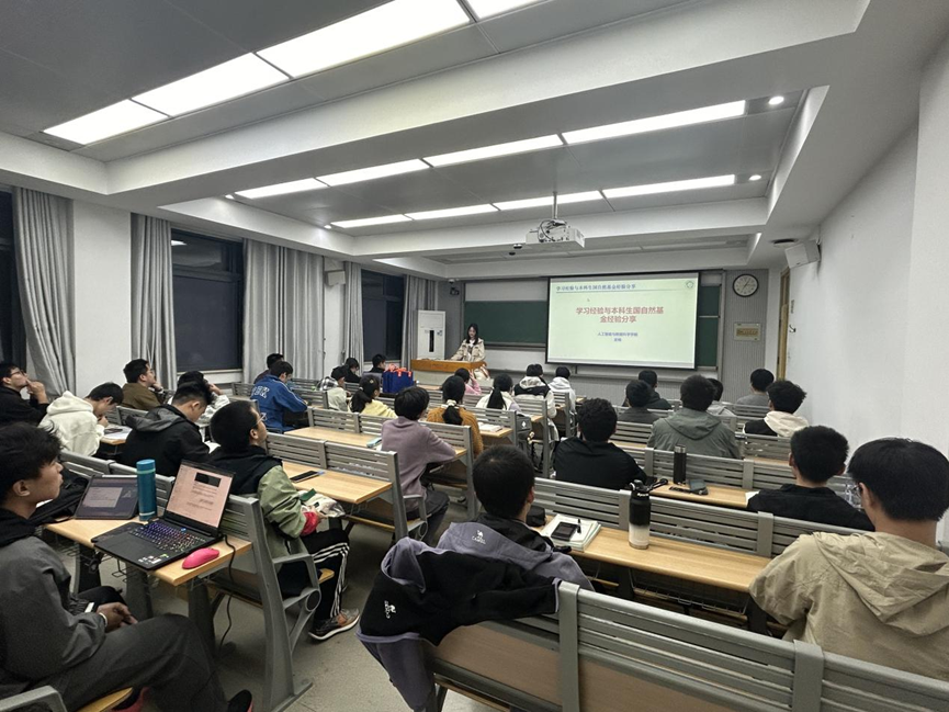 活动第一环节:往届优秀学习经验分享会。本次分享会邀请2021级本科3班吴畅和谢绮两位同学,分别围绕“学习经验和本科生国家自然科学基金申报经验”与“大学本科学习生活指南”进行细致且有趣的分享。在随后的问答环节中,同学们积极提问,两位师姐详细解答,有效为同学们的学习和生活提供指引,并建立未来沟通联系渠道。