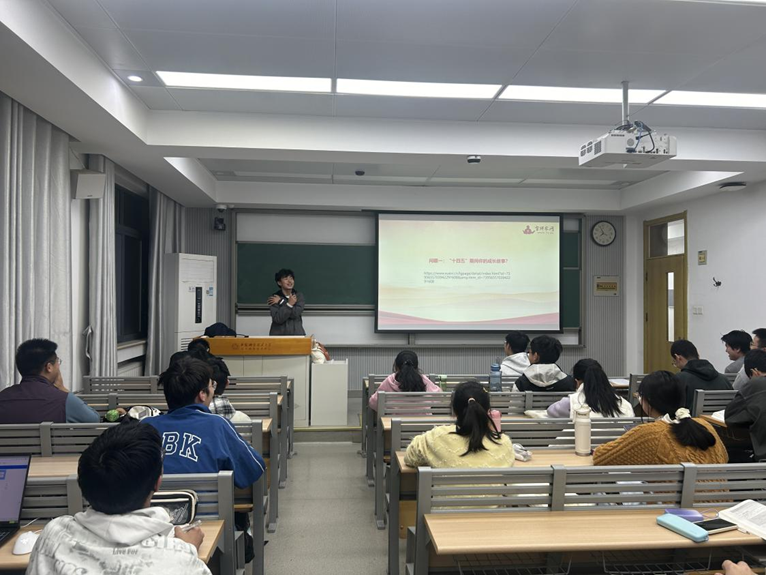 活动第二环节:党的二十届四中全会精神学习。凌辉老师带领同学们原原本本深入学习党的二十届四中全会精神和“十五五”规划相关内容。同学们围绕“十四五”期间的成长经历、作为科大学子对“一体推进教育科技人才事业发展”的理解以及个人未来规划等议题展开热烈讨论与交流,进一步增强了同学们对国家发展的清晰认识,提升了政治理论素养与社会责任感。