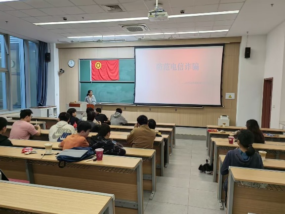 活动伊始,思政委员桑凯楠首先进行了开场发言。她结合近期高校内及周边发生的真实诈骗案例,向同学们系统梳理了当前常见的电信诈骗类型,深入浅出地剖析了各类诈骗手法的运作机制和关键陷阱,强调了诈骗分子如何利用人们的贪念、恐惧、疏忽等心理弱点实施犯罪。