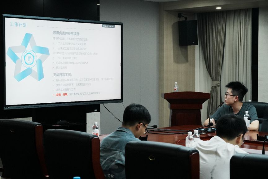 为便于新成员快速融入研会大家庭,研会各部门及新闻中心的新老成员依次从个人兴趣、专业背景等方面进行了精彩的自我介绍。接着,研会各部门及新闻中心负责人依次发言,详细介绍了各部门的主要工作内容,并就工作中的常见挑战和应对办法进行了总结与讨论。通过这一环节,新老成员相互熟悉,增进了团队凝聚力,也为后续工作的开展奠定了良好的基础。最后,主席团成员总结发言,勉励新老成员积极参与研会工作,为学院团学工作贡献自己的力量。