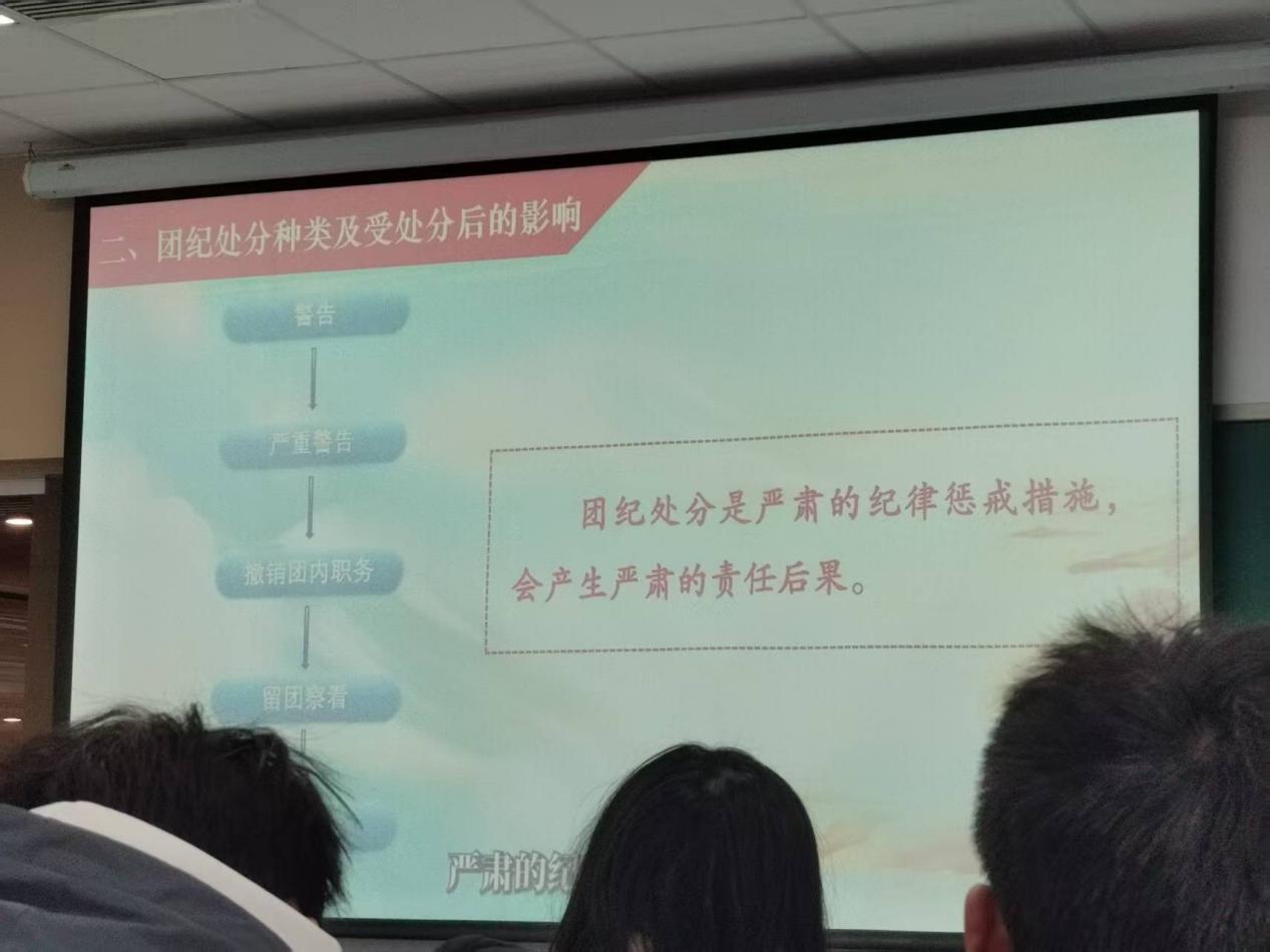 活动精选学习素材,视频内容主讲组织纪律、廉洁纪律等五大类规章制度处分情形,重点标注"考试作弊留校察看期""网络言论追责时效"等12项与学生密切相关的条款。学习内容还包括真实案例,还原“学术不端取消评优资格”“不当社交言论受警告处分”等处理全过程,以及所依据的团纪团规。班级中的部分团员同学表示,视频中因代考受留团察看处分的案例,让其深刻认识到违纪成本远超预期。