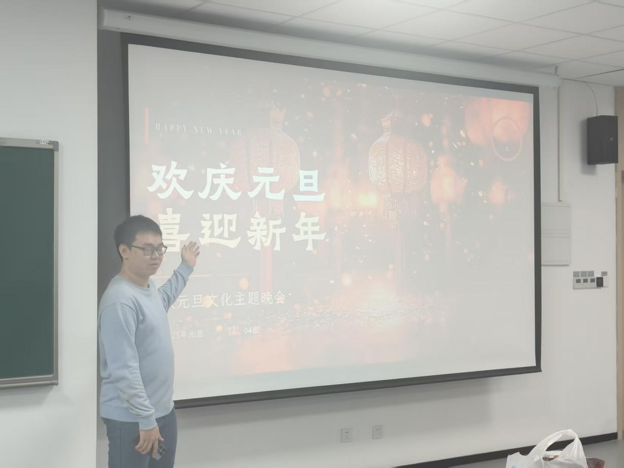 为了传承中华传统节日文化,丰富班级课余生活,进一步增强同学间的凝聚力与协作意识。信息科学技术学院2023级本科04班于2025年12月31日晚在GH-206教室举办了元旦晚会。本次晚会由文艺委员王善奇和组织委员庄欣瑶统筹策划,以“辞旧迎新、欢聚今朝”为主题,通过文化介绍、文艺表演、互动游戏等多个环节。