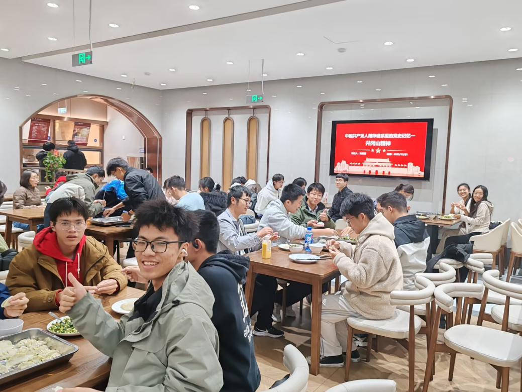 “冬至大如年,人间小团圆。”12月21日晚,东区星座餐厅内暖意融融,信息科学技术学院2025级本科1班的同学们齐聚于此,一同包制饺子、共话传统节俗,在饺香余韵中共同聆听党史故事、学习井冈山精神,在劳动协作与红色洗礼中体悟文化传承、筑牢信仰根基。