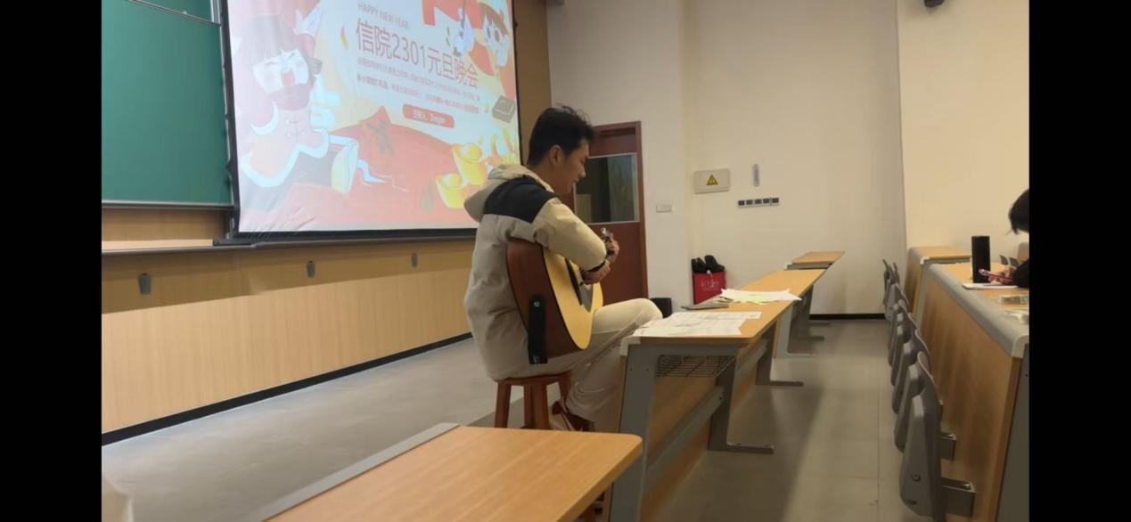 在晚会最后,孔曦同学还为大家带来了吉他表演《那些花儿》,“他们都老了吧,他们在哪里呀~”大家沉浸在悠扬的歌声中。回望过去一年,有过泪,有过笑,回想起科大学习生活的点点滴滴,一切遗憾与烦恼都随着和弦飘向远方,迎接我们的是新年的朝阳和美好。