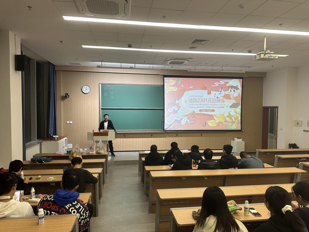 2026年1月1日晚,信息科学技术学院2023级本科1班在GTB-210教室举办了温馨欢乐的元旦晚会。一系列由同学们自主设计的互动游戏成为整场晚会的亮点,现场气氛热烈,欢声笑语不断,展现出班级团结活泼的集体氛围。
