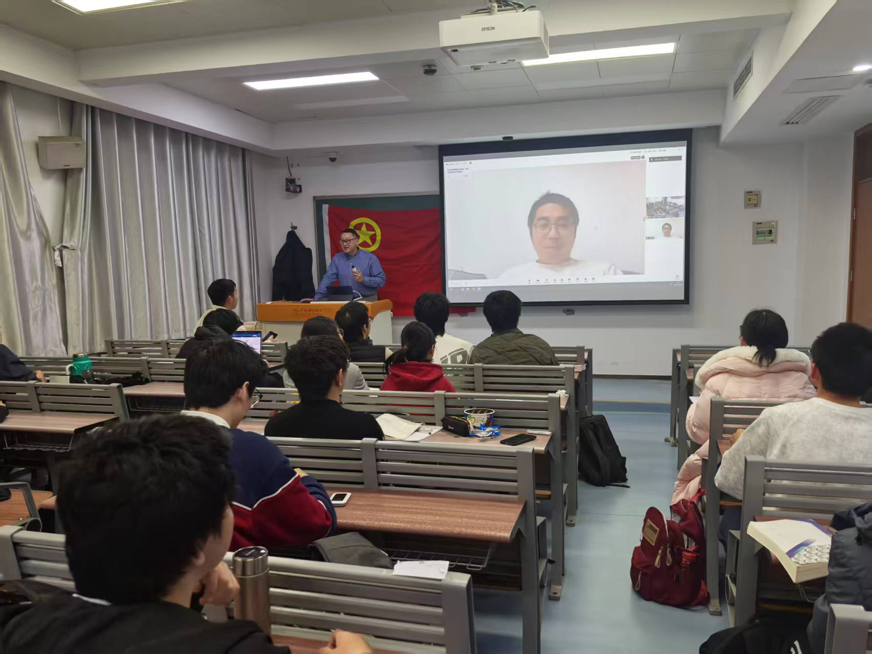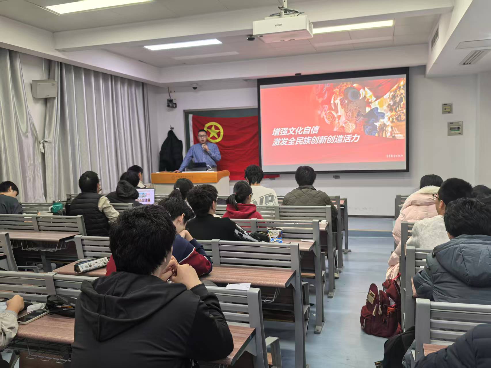 本次班会还特别设置了形势与政策专题授课环节,主题为“增强文化自信”。校“形势与政策”课程教研室的潘磊老师从文化传承与时代发展的角度展开讲解,结合趣味视频,使课堂生动有趣,有效提升了同学们的参与度。课程尾声,现场连线了学校派驻在贵州六枝特区扶贫一线的刘东阳老师,通过分享实践故事与经验,深化了同学们对社会责任的理解,引发了强烈共鸣。