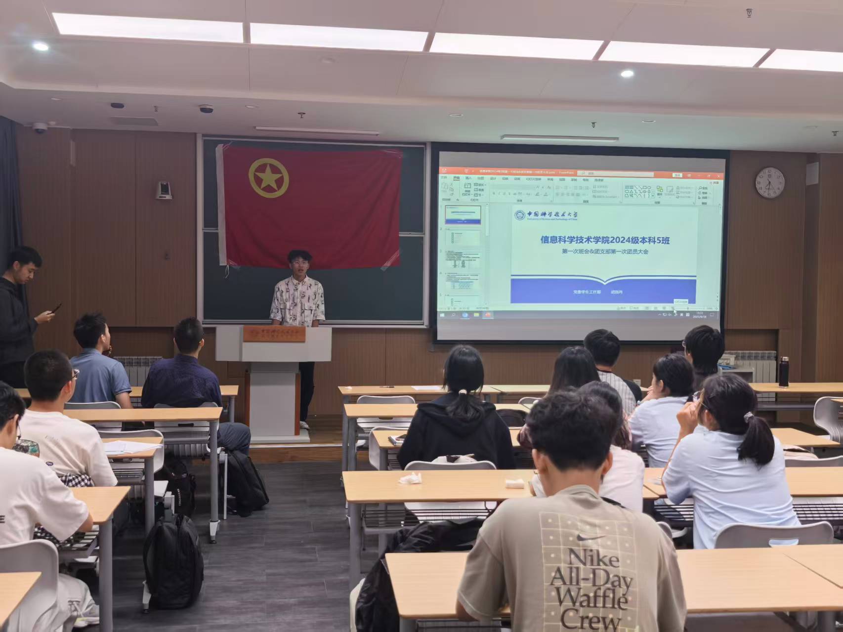 2025年9月18日晚,信息科学技术学院2024级本科5班在5107教室顺利召开了新学期第一次班会暨团支部第一次团员大会。本次会议由班主任胡效鸣老师主持,全体同学积极参与,旨在欢迎新同学、部署新学期工作、强化学风建设与安全意识,并推进团支部重点工作。
