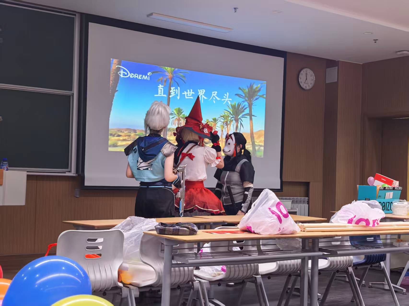 晚会由班长刘涵彬担任主持,在他的热情开场下,节目环节正式拉开帷幕。罗中坚以一首《孤独患者》率先登场,深情的嗓音直击人心,瞬间点燃了现场气氛。随后,徐心越、张顺子、朱琴三位同学带来了串烧表演《三域同歌》,他们身着精致的COS服装,造型惊艳,演唱默契,将晚会推向第一个高潮。刘涵彬的《春雨里洗过的太阳》节奏轻快,唱出了青春的朝气蓬勃;朱轩毅的《十年》则用真挚的情感引发了全场的共鸣,不少同学轻声跟唱,场面温馨感人。