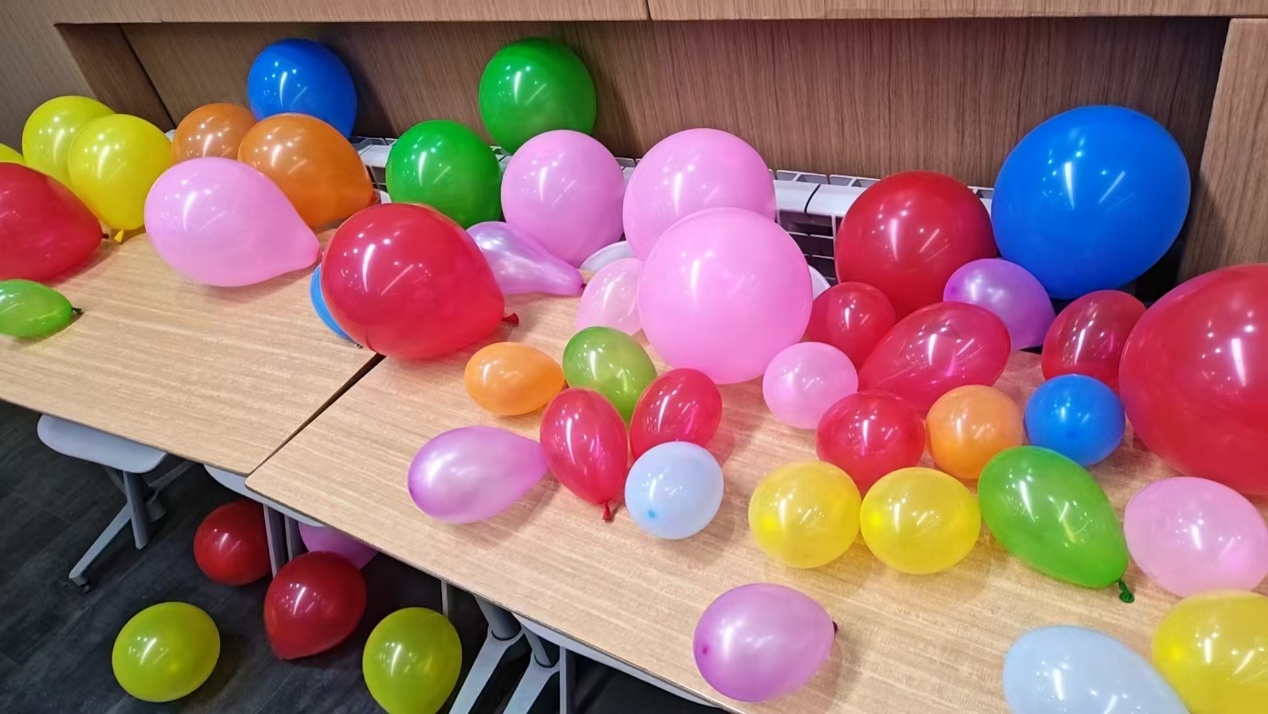 下午5点,班级志愿者们早早来到教室,开始了紧锣密鼓的布置工作。五彩斑斓的气球被巧妙地粘贴在教室的各个角落,黑板上贴满了“2026新年快乐”的创意贴纸,桌椅被摆放成四边形的三边,既方便互动又增添了节日气息。在大家的共同努力下,原本普通的教室瞬间焕然一新,温馨喜庆的氛围感染着每一位到场的同学。