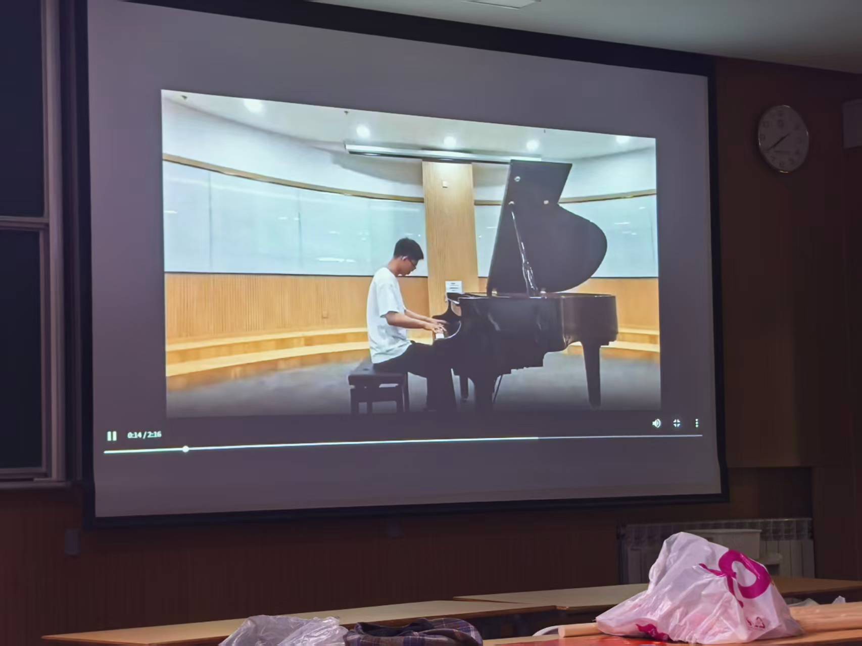 视频与器乐表演同样精彩纷呈。抖音视频组合《2025年度神曲盘点》和《晓燕妙妙屋与大燕公主》以创意剪辑勾起了同学们的集体回忆,笑声不断。公益小品《大学生致富之道》通过诙谐的表演普及防诈骗知识,寓教于乐。沙恩泽的钢琴独奏《菊次郎的夏天》旋律悠扬,让现场瞬间安静下来,大家沉浸在美妙的音乐中。视频组合《在疯狂动物城混点奇怪东西》则以幽默的画面逗得全场捧腹。王浩含的神秘魔术表演更是充满悬念,他精准猜中纸片位置的技巧让同学们惊叹连连,掌声经久不息。