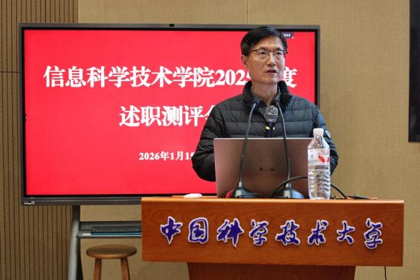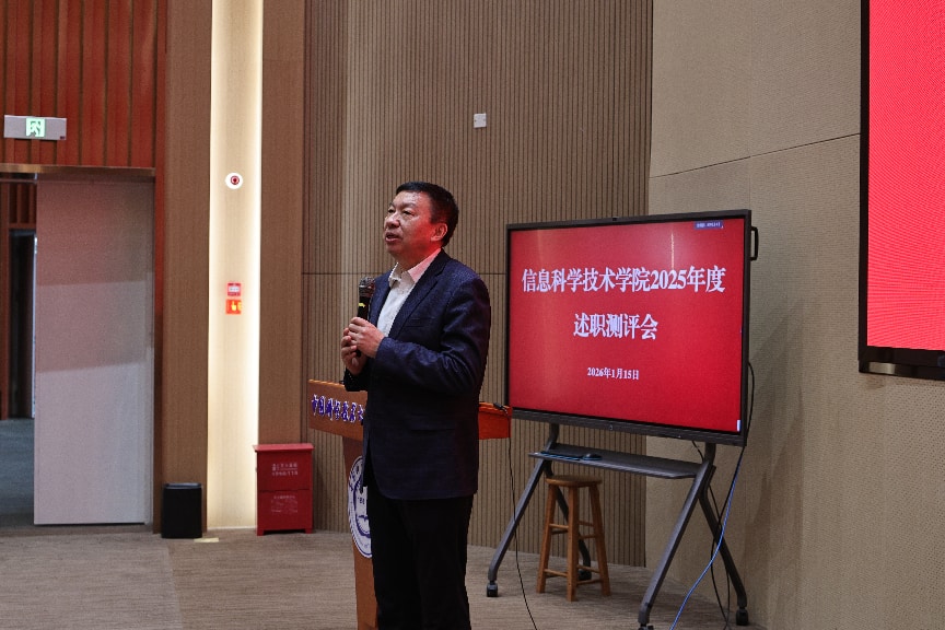 根据学校2025年度中层领导班子和领导干部考核工作安排,2026年1月15日下午,信息科学技术学院在高新校区图教中心C102报告厅召开2025年度考核述职测评会。校党委书记舒歌群出席会议,学校民主测评工作组成员、少年班学院党总支副书记徐晶芝列席会议,学院全体教职工参加会议。会议由信息科学技术学院党委书记李斌主持。