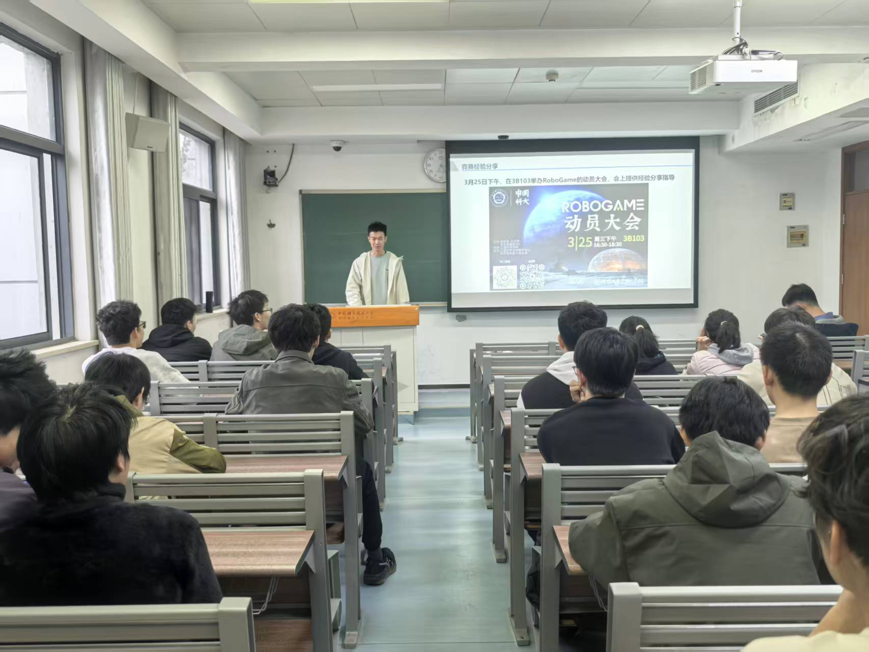 在竞赛经验分享环节,朱轩毅同学结合自身参加数学建模竞赛的实战经历,为在场同学带来了一场生动详实的分享。他介绍了美国大学生数学建模竞赛及全国大学生数学建模竞赛的基本情况,解析了为期四天的赛程中论文撰写的关键环节,并梳理出“组队报名—选题攻坚—模型构建与编程—论文撰写与修改”的完整备赛流程。朱轩毅还就选题策略、论文结构规范、团队协作要点等分享了实用技巧,为有志于参与学科竞赛的同学提供了宝贵参考。会上同时发布了3月25日RoboGame机器人竞赛动员大会的通知,鼓励大家踊跃参赛,在实践中提升创新与实践能力。