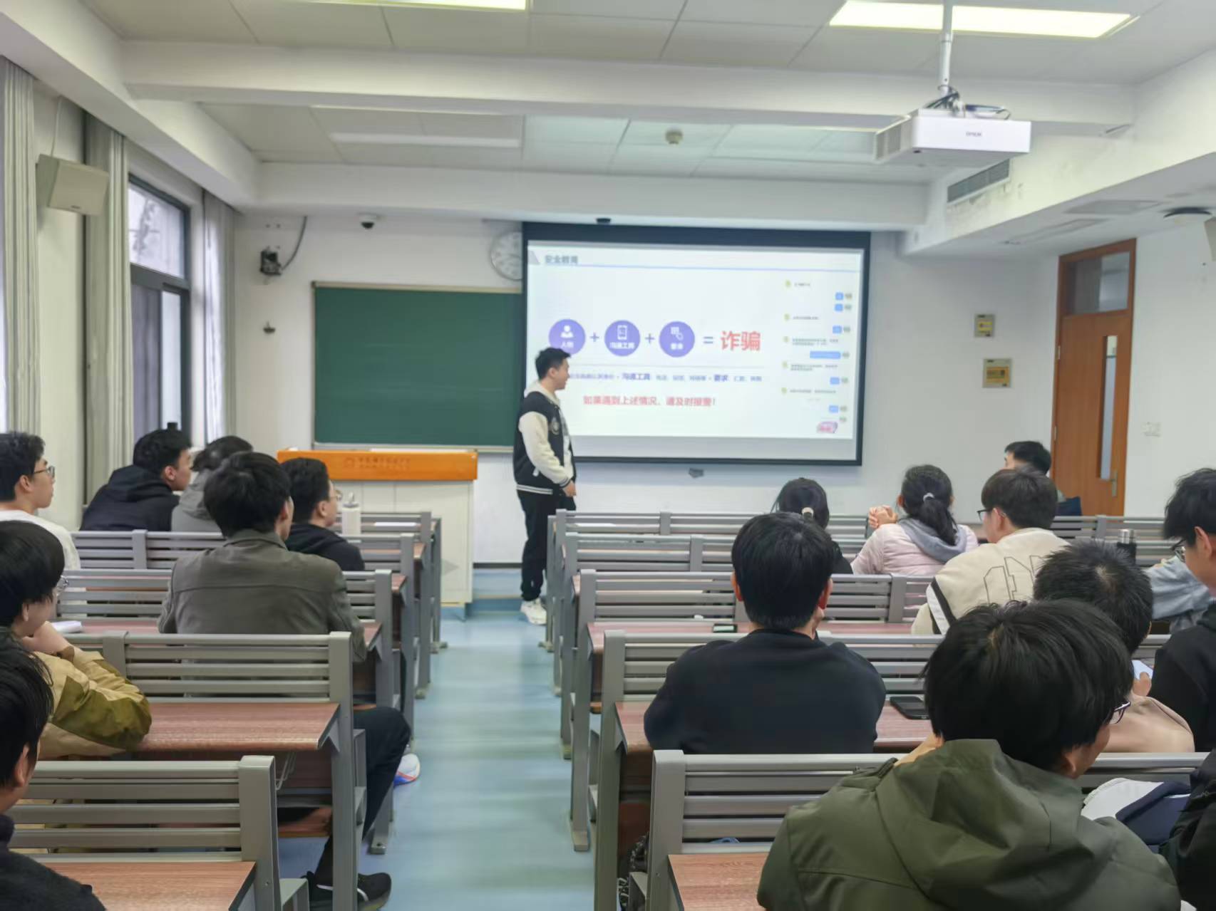 安全教育是本次会议的重点环节之一。常佳杰同学通过展示真实的网络聊天记录截图,讲述了自己亲身经历的诈骗识别与防范过程,使同学们对诈骗分子的常用话术与手段有了直观认识。在此基础上,会议进一步系统剖析了虚假购物服务、刷单返利、游戏账号交易等在大学生群体中高发的诈骗类型,逐一拆解其作案手法与典型特征,并向同学们普及了实用的防骗知识与应急处置方法,提醒大家时刻保持警惕,切实守护个人财产安全与信息安全。