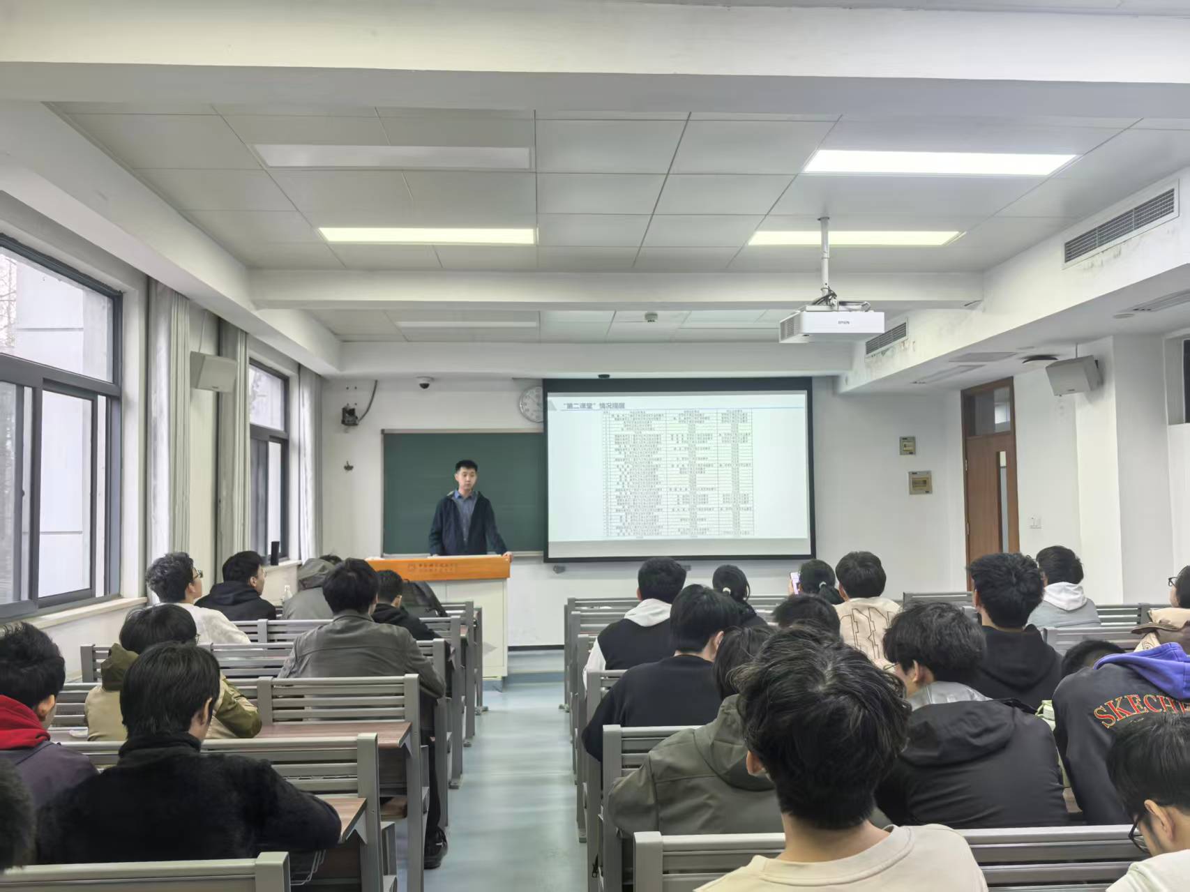 会议伊始,班主任胡效鸣老师就“第二课堂”学时认定与积累要求作了详细说明。他结合奖学金评定、保研资格审核以及毕业要求等相关政策,系统解读了德育、智育、体育、美育、劳育各模块的学时标准,并依据班级前期排查数据,指出了当前部分同学在实践学时方面存在的差距。胡老师鼓励同学们合理规划课余时间,主动参与社会实践、志愿服务与文体活动,在积累学时中拓展综合素质,为未来发展奠定坚实基础。