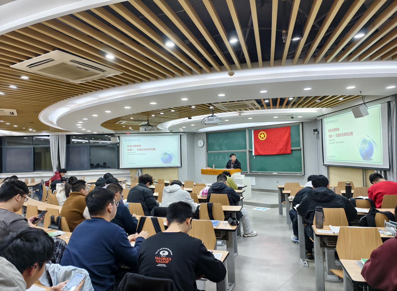 在安全教育环节,安全委员张子奕同学结合学校保卫与校园管理处发布的校园交通安全规范,系统讲解了交通安全常识、校园内外出行指南及事故应对流程。他明确指出,步行分心、骑行超速、不戴头盔、违规停车等行为均存在严重安全隐患,并重点强调校园通行规则:机动车校内限速20公里/小时,非机动车限速15公里/小时,进出校门限速5公里/小时,骑行电动车必须规范佩戴头盔,车辆需在指定区域有序停放。他同时详细梳理了校外步行、骑行、乘车的安全要点,并告知同学们遭遇交通事故时,及时拨打110、122、120及校园保卫处电话,保护现场、留存证据,科学开展自救与救援。最后,全体同学共同学习校园交通安全倡议,承诺遵章守规、文明出行,共建安全有序的校园交通环境。