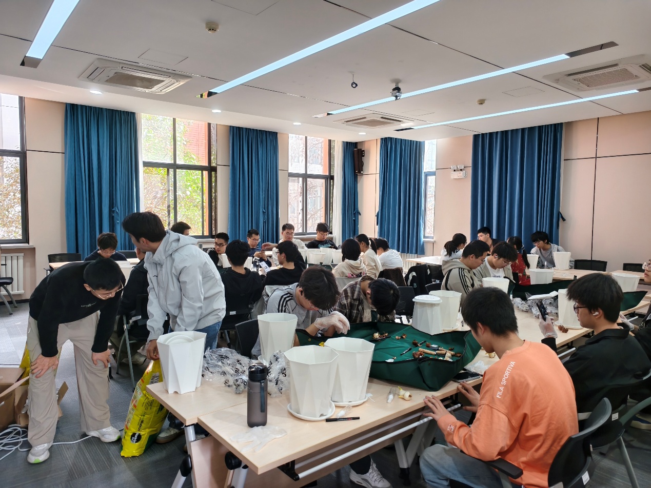 种植过程中,大家小心翼翼地将营养土装入花盆,再将种球尖端向上轻轻植入土中,覆土压实,并适量洒水。尽管空间有限,但小组内分工明确、协作有序。有的同学还为自己种植的郁金香插上创意标签,写下姓名或寄语,赋予每盆花独特的意义。