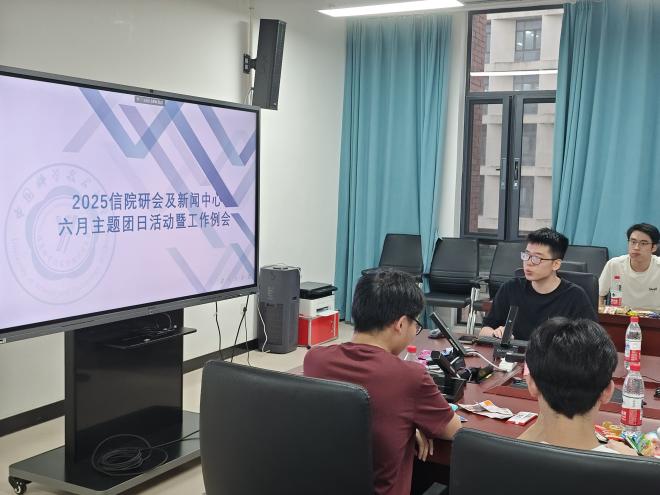 2025年6月30日晚19:00,信息学院研究生会及新闻中心2025年六月主题团日活动暨工作例会在高新校区1号学科楼A400会议室顺利召开。本次活动由信息学院研究生会及新闻中心联合举办。信院研会主席团成员邰志伟、祁凯、戴天扬,各部门部长、副部长以及部员列席会议。信院研会办公室主任张泊墉同学负责活动主持工作。
