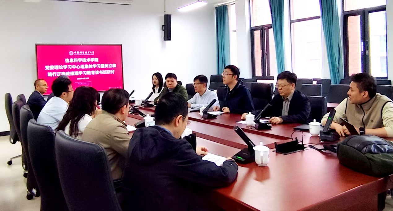 4月28日上午,信息科学技术学院在高新校区1号学科楼A400会议室召开党委理论学习中心组学习暨树立和践行正确政绩观学习教育读书班。学院党委书记李斌主持会议,党委理论学习中心组成员参加学习。